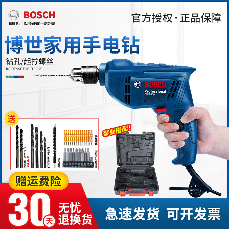 博世手电钻GBM400家用多功能手枪钻电动螺丝刀博士起子机电转工具
