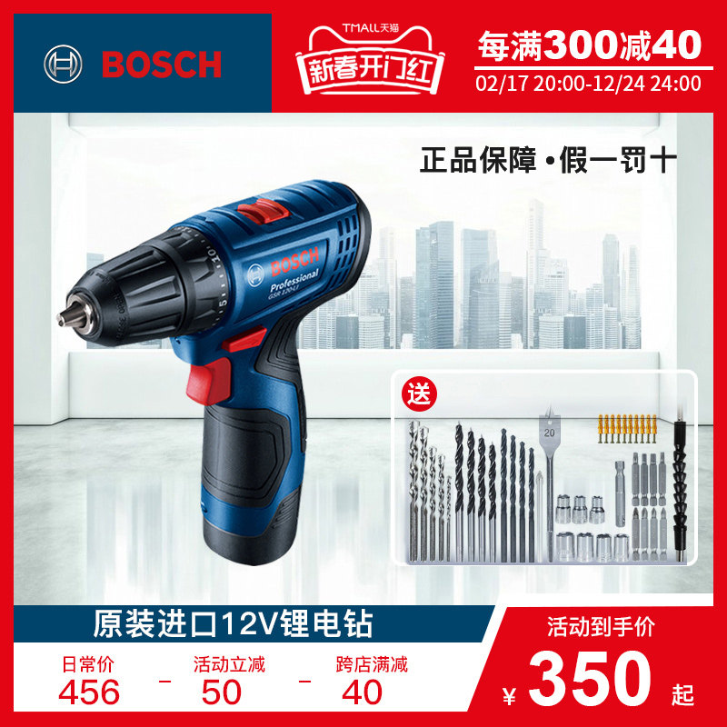 博世锂电钻GSR120-Li充电式手枪钻多功能12V手电钻家用电动螺丝刀