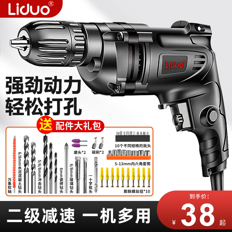 手电钻冲击钻家用220V手枪钻小型手电转电动螺丝刀钻孔机工具大全
