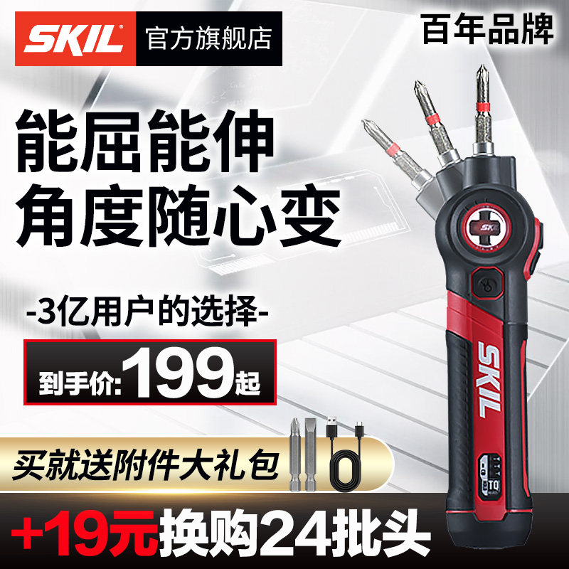 skil迷你电动螺丝刀家用电批小型充电电起子调角度多功能工具5619