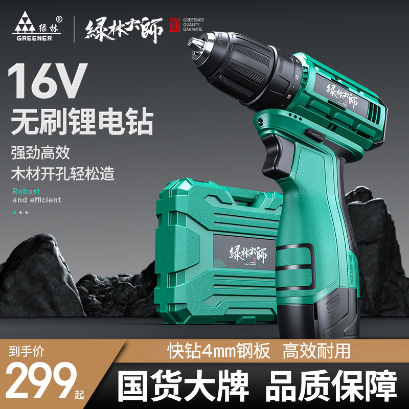 绿林大师无刷电钻手枪钻电动工具螺丝刀充电冲击钻家用锂电手电钻