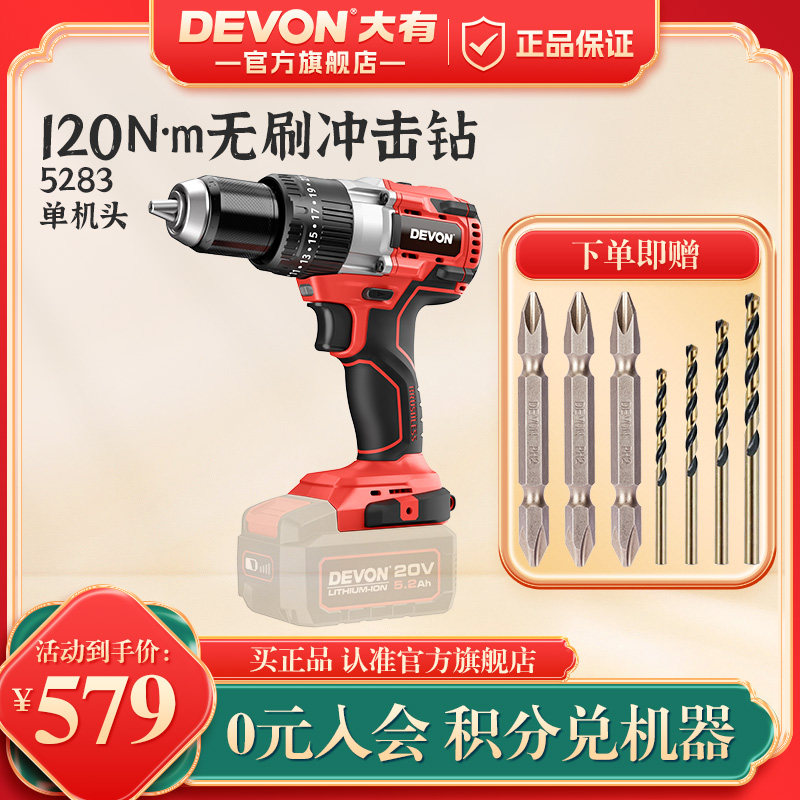 大有冲击钻5283工业充电手电钻家用多功能电动螺丝刀锂电手转工具