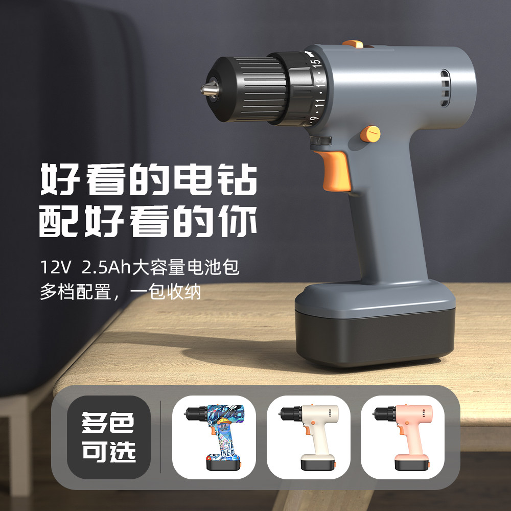 手电钻充电式冲击钻家用工具多功能小手枪钻锂电转无刷电动螺丝刀