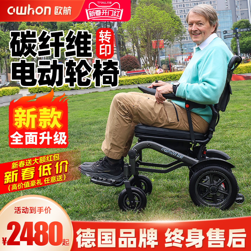德国欧航电动轮椅老人专用智能全自动折叠轻便残疾人老年人代步车