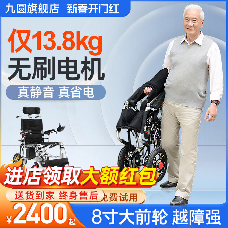 九圆电动轮椅智能全自动老人专用残疾人老年代步车轻便折叠多功能