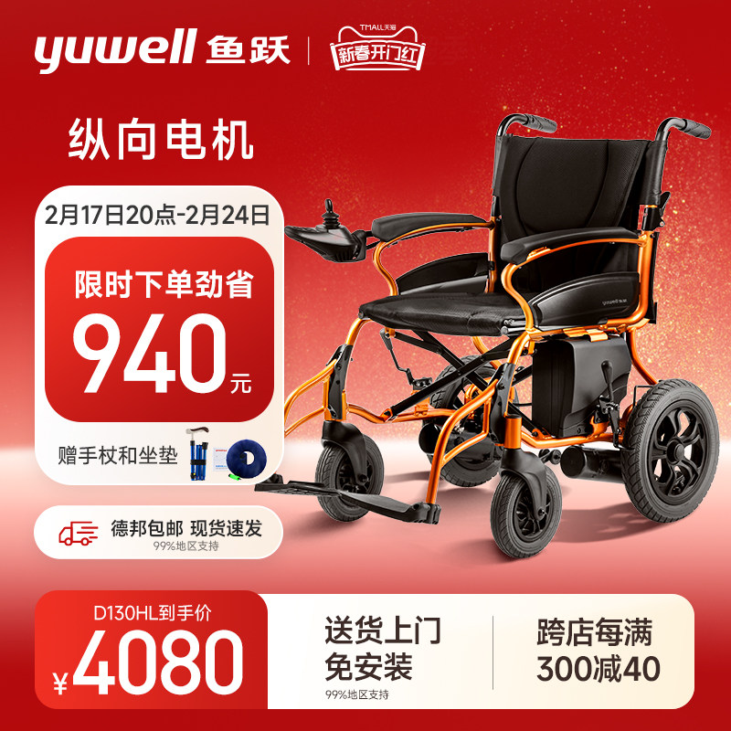 鱼跃电动轮椅车折叠轻便老年人专用残疾人智能全自动代步车D130FL
