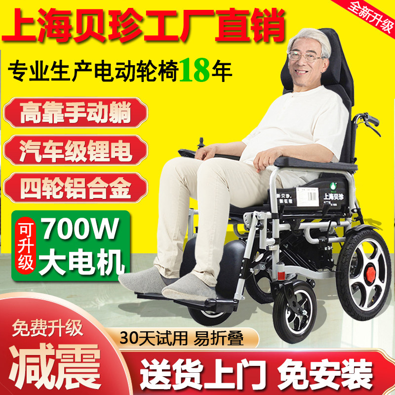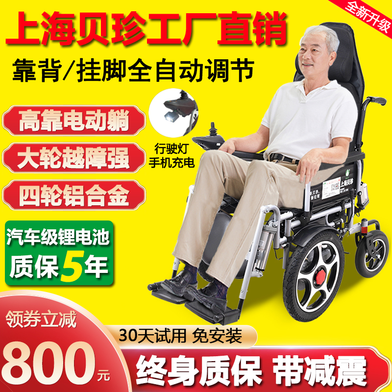 上海贝珍电动轮椅智能全自动高靠背老年残疾人代步车锂电池可躺