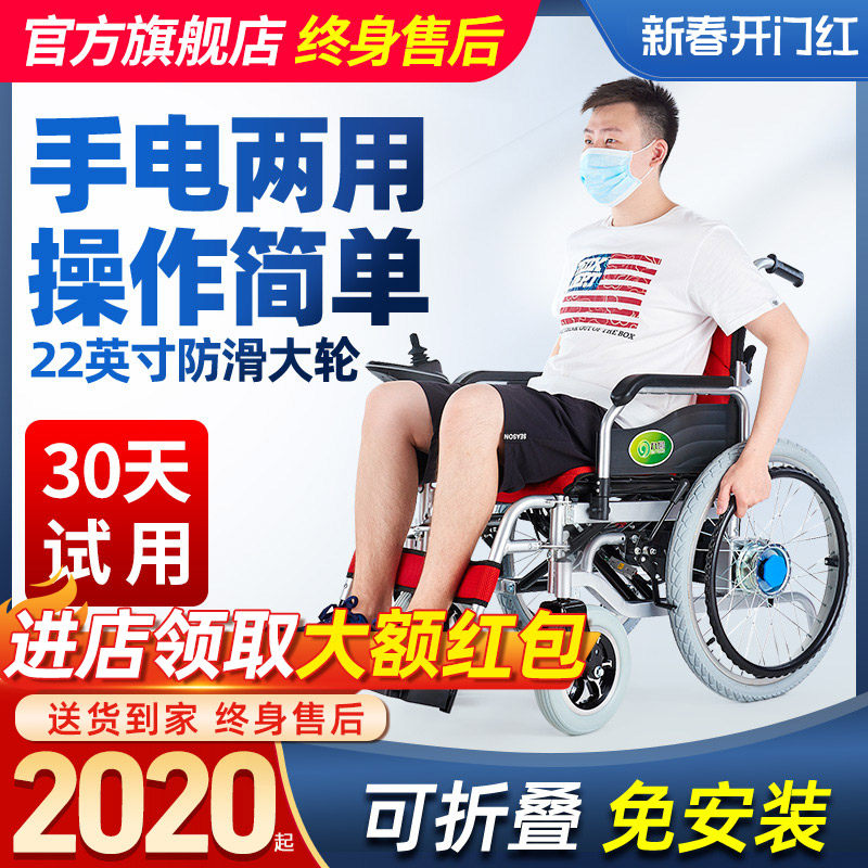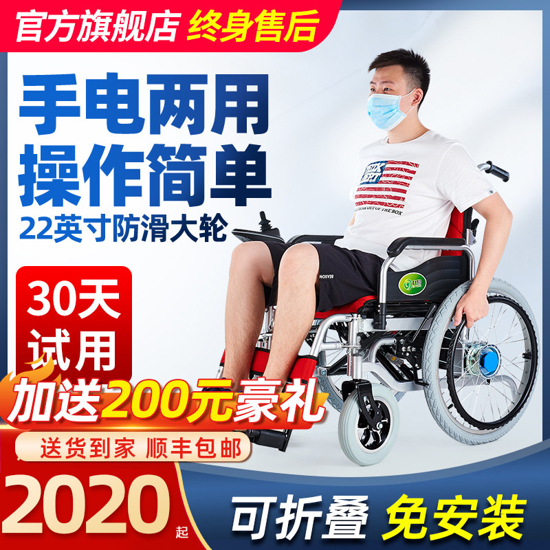 九圆电动轮椅老年人专用智能全自动折叠便携残疾人双人大轮代步车