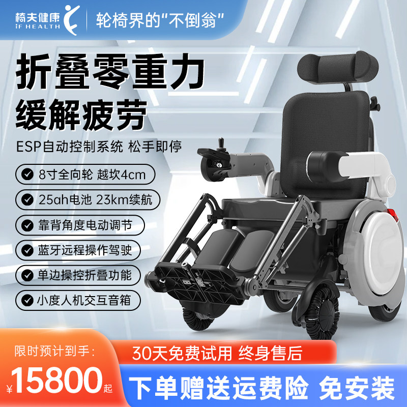 椅夫电动轮椅折叠方便智能全自动老年代步车残疾人专用高端助力车