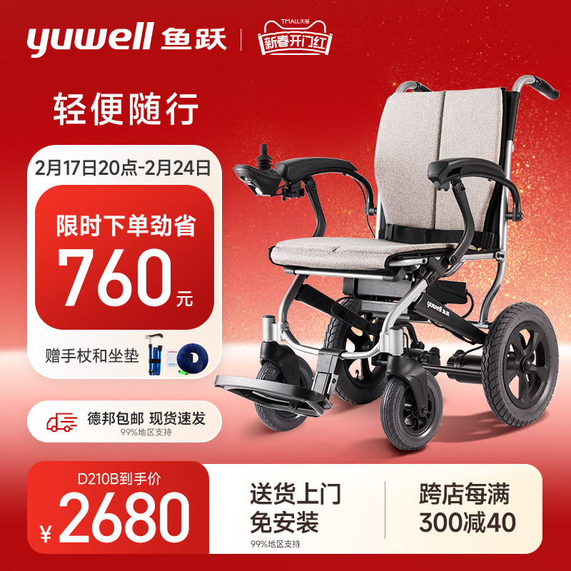 鱼跃电动轮椅车折叠轻便老年人专用残疾人智能全自动代步车D210B