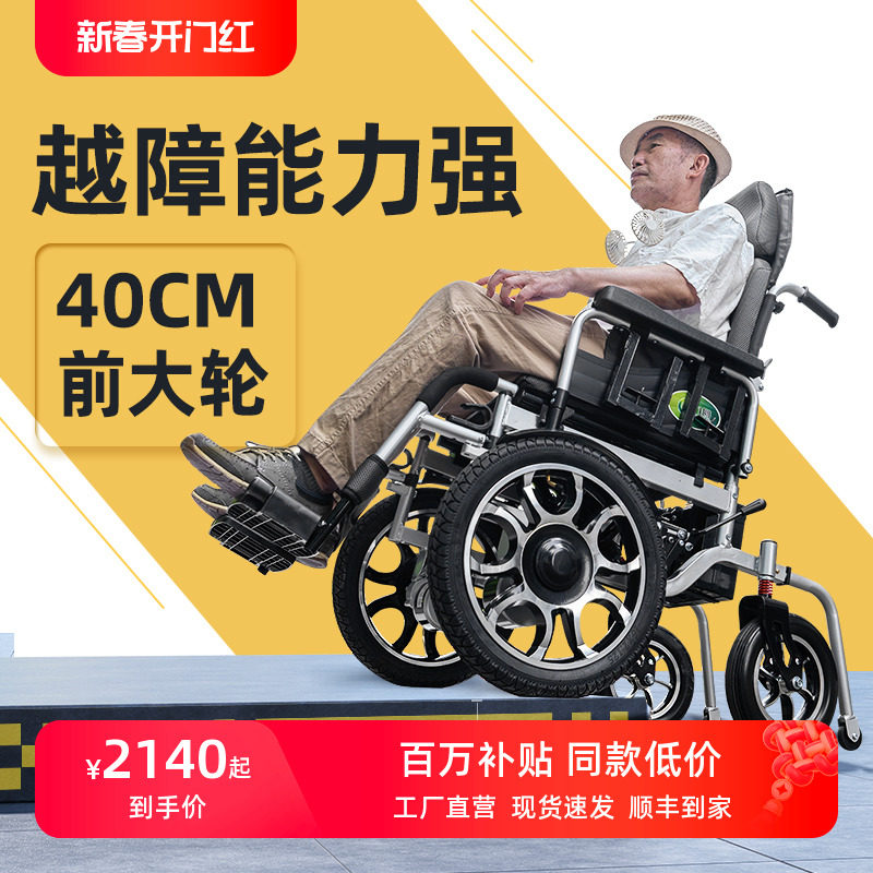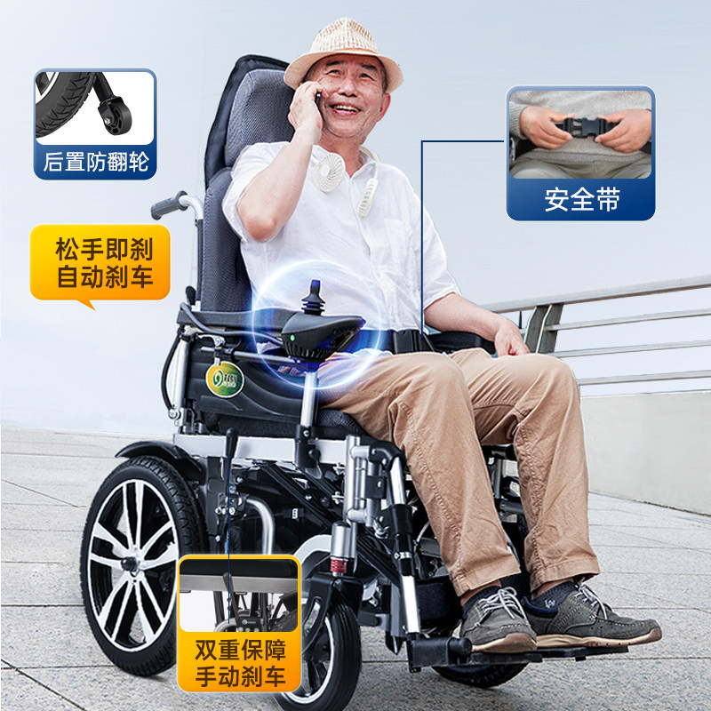 九圆700W电机越野电动轮椅智能自动老年残疾人专用折叠轻便代步车