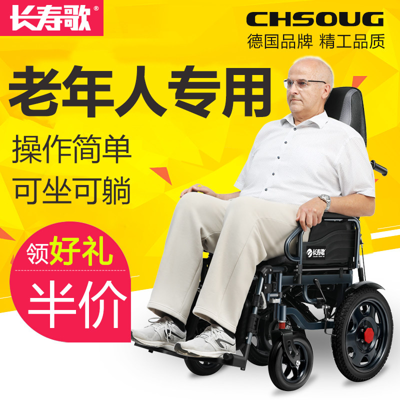 长寿歌电动轮椅智能全自动轻便可折叠老人残疾人可躺多功能代步车