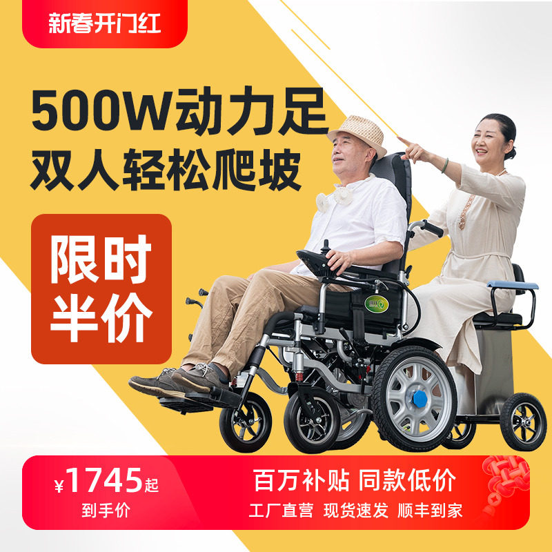 九圆电动轮椅越野车智能全自动折叠轻便老人残疾人专用双人代步车