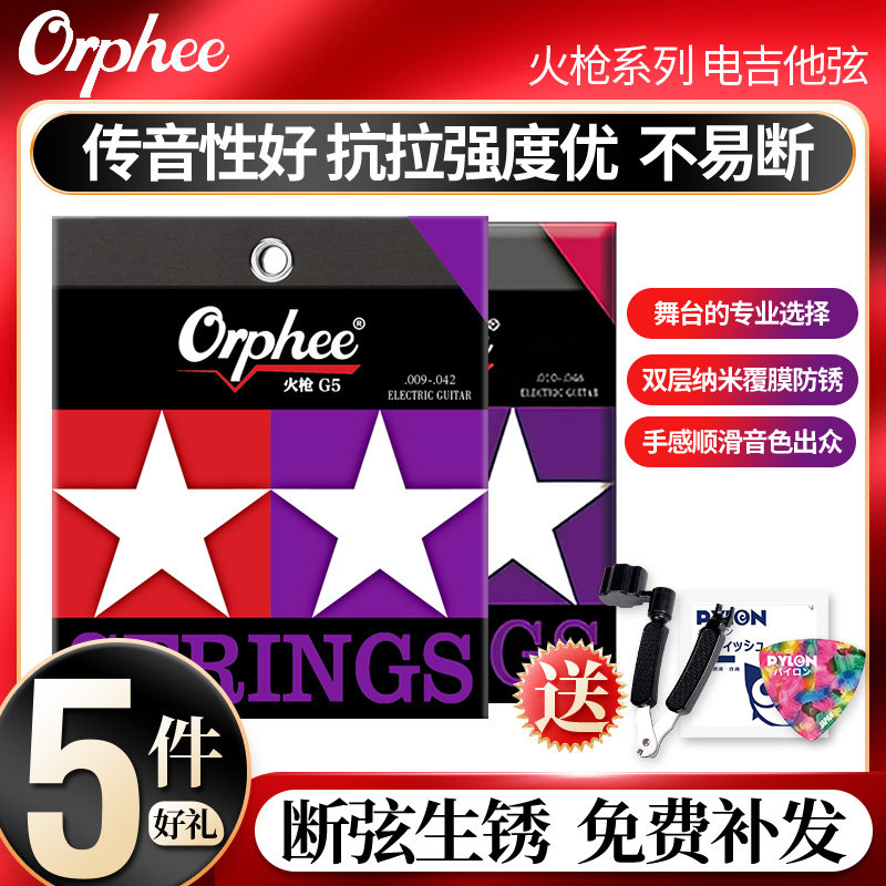 Orphee奥路菲火枪电吉他琴弦G5 G6双层镀膜防锈吉它弦线一套6根装