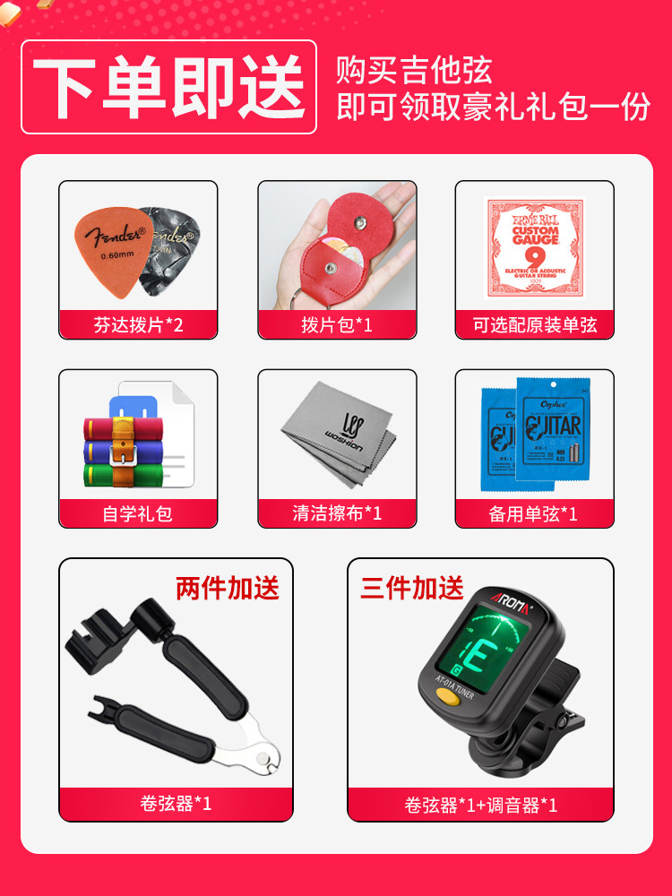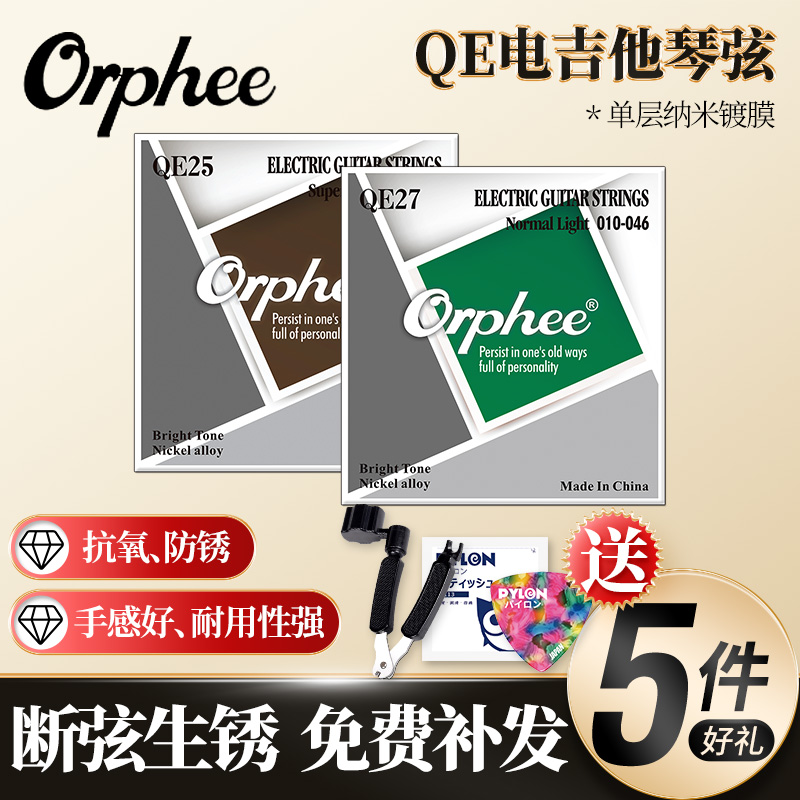 Orphee奥路菲琴弦电吉他弦QE25 QE27超薄覆膜防锈耐磨吉它琴弦线