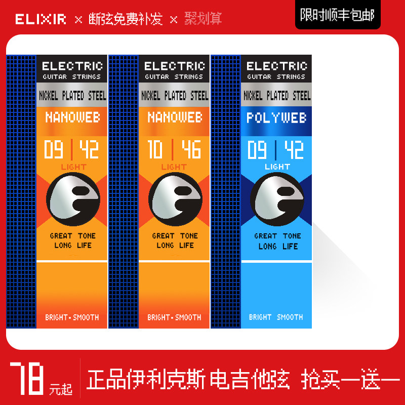 伊利克斯电吉他弦线elixir琴弦6弦全套覆膜防锈09 010镀膜正品