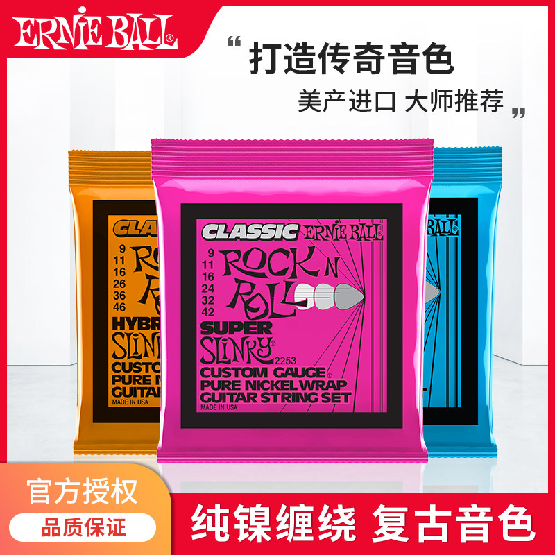 Ernie Ball纯镍电吉他弦2250 2251 2252 2253电吉它一套6根装琴弦
