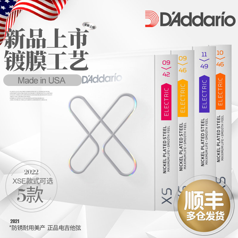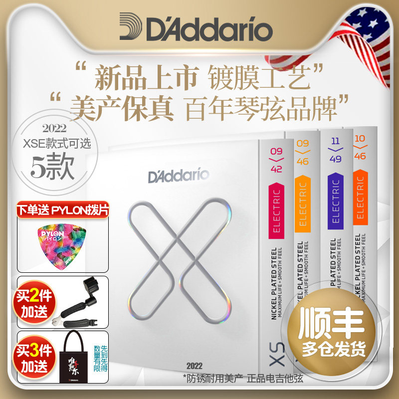 D'Addario达达里奥XS镀膜电吉他琴弦6根一套装XSE防锈弦线正品010
