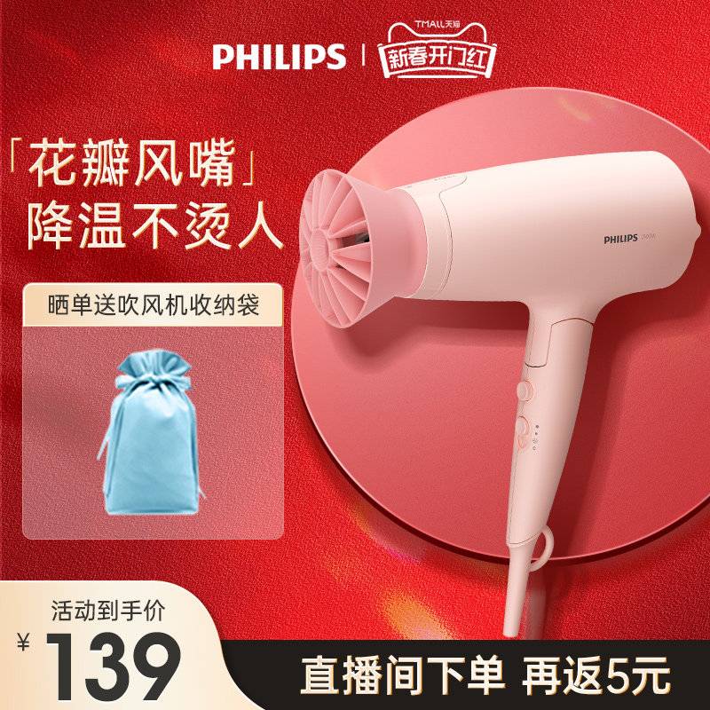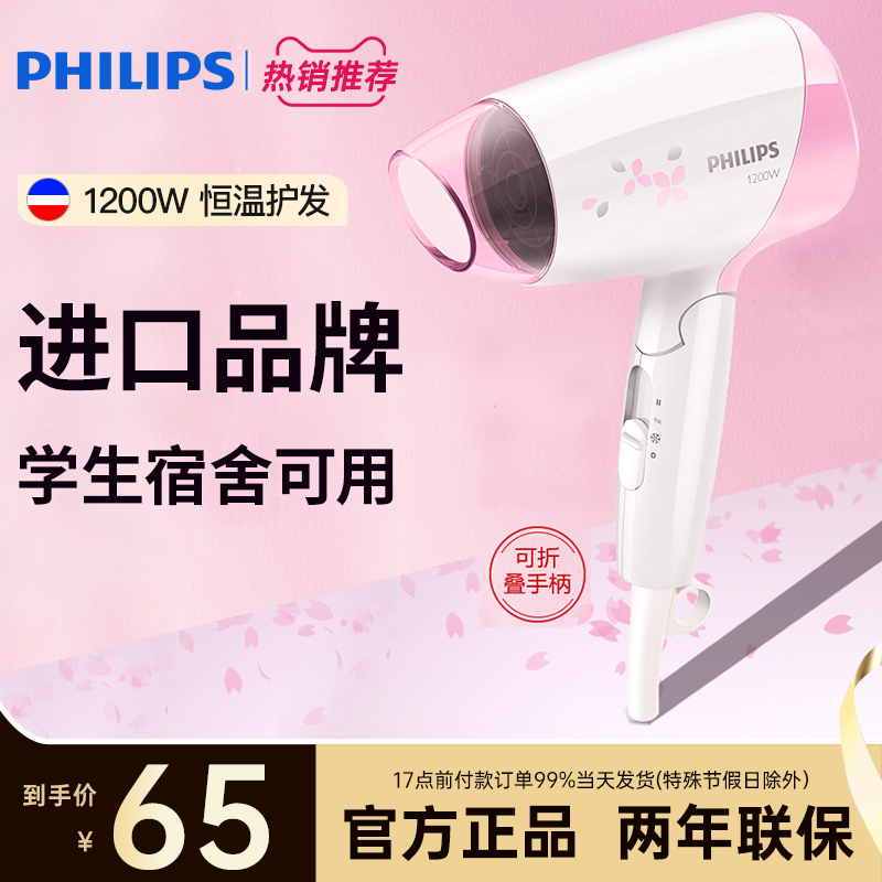 飞利浦小花筒电吹风机风筒家用大风力宿舍用学生负离子护发BHD378