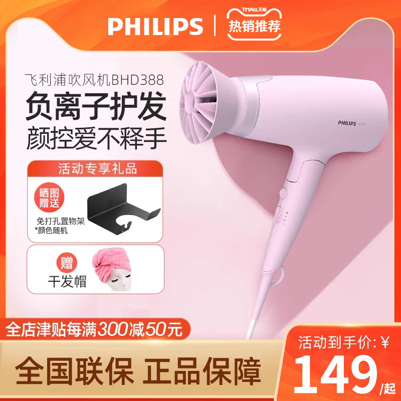 飞利浦电吹风机负家用负离子大功率恒温宿舍学生护发吹风筒BHD388