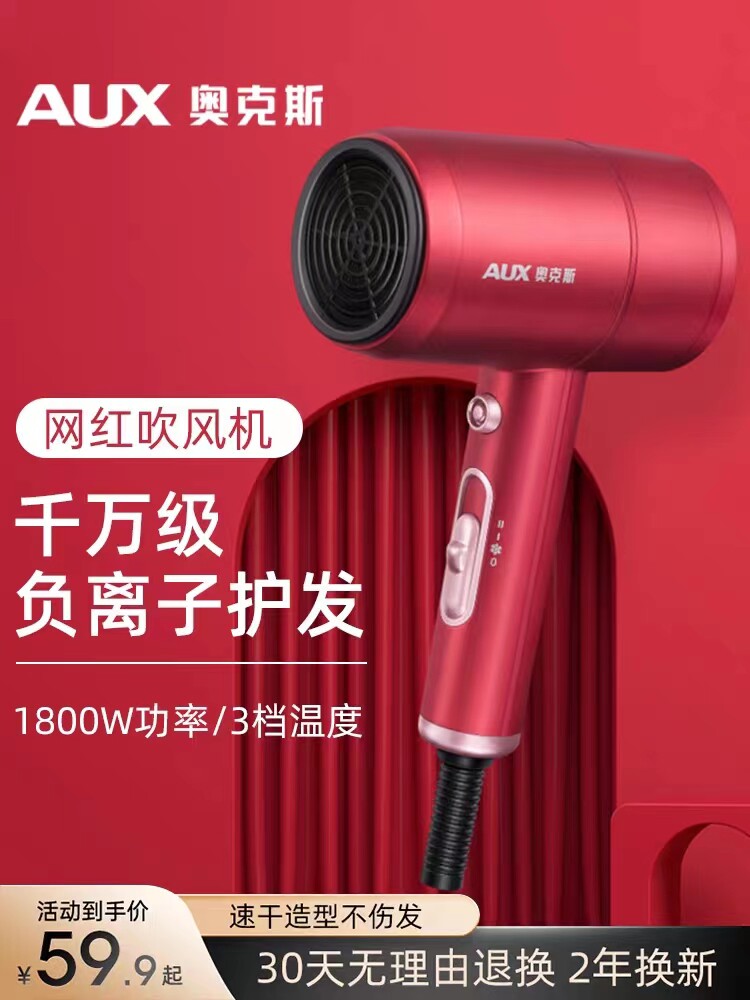 奥克斯电吹风机负离子护发不伤发1800W家用大风力速干冷热吹风筒