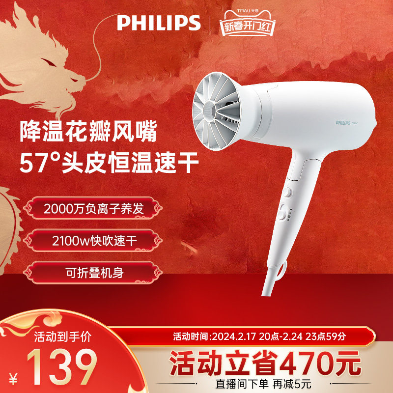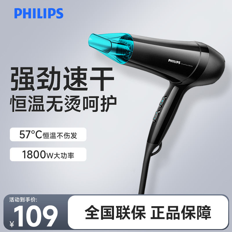 【负离子护发】飞利浦电吹风机家用大风力大功率风筒官方旗舰正品