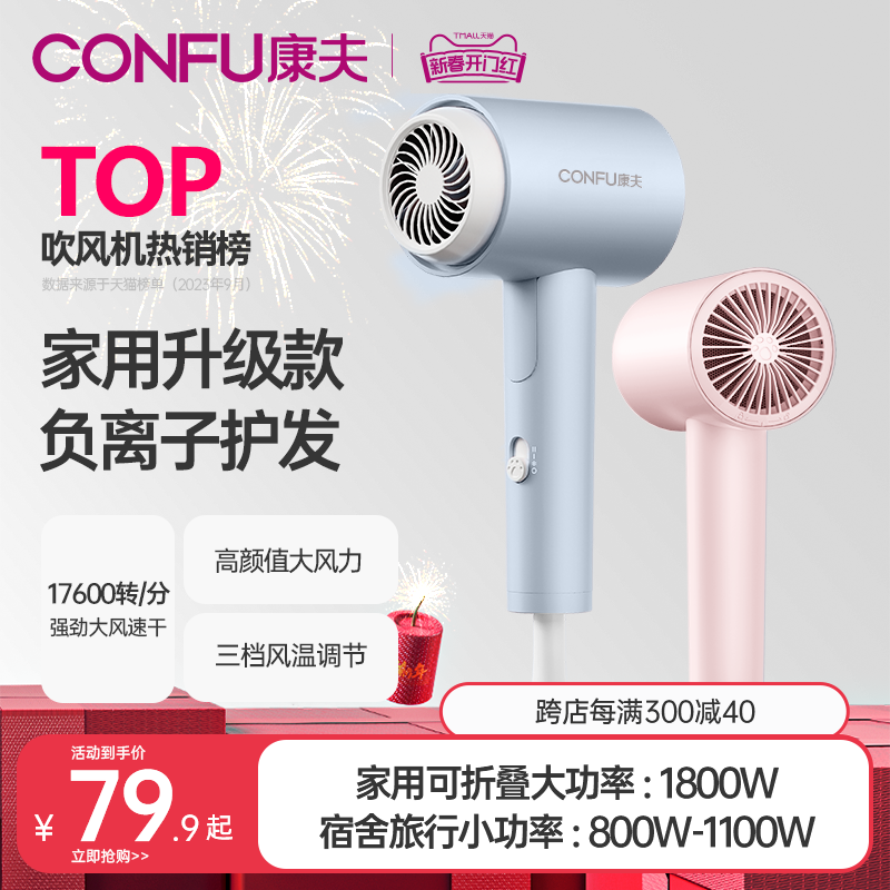 CONFU康夫吹风机负离子护发家用宿舍用电吹风低辐射杀菌吹风筒