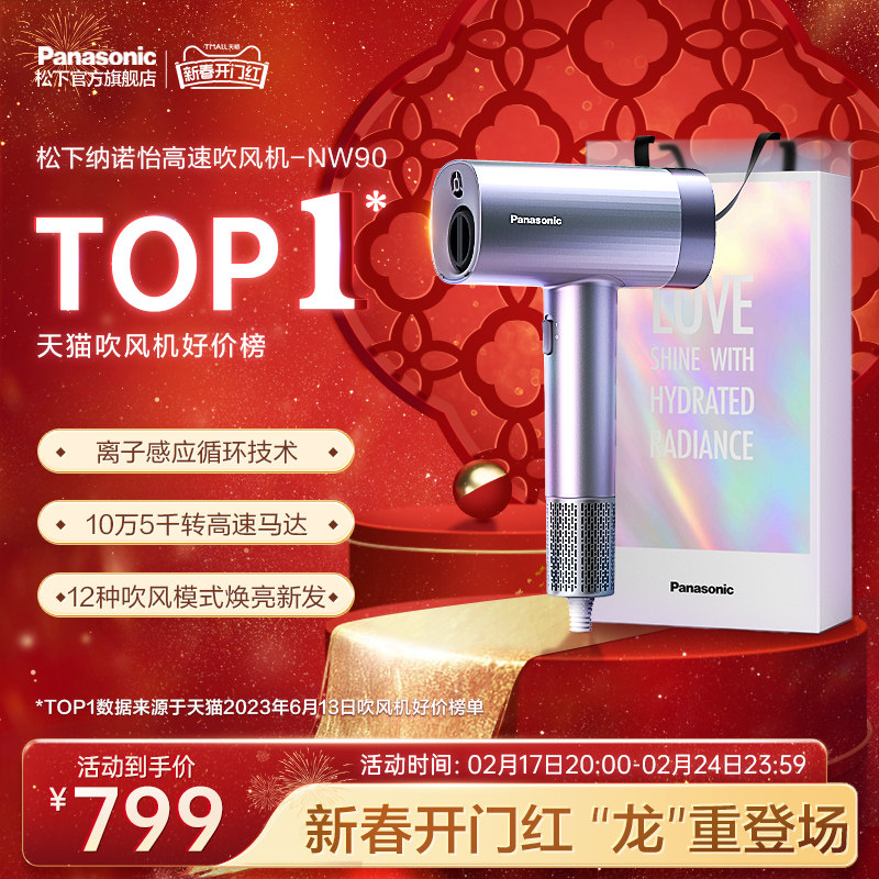 【新年礼袋】松下纳诺怡电吹风高速马达吹风机家用大功率NW90绮光