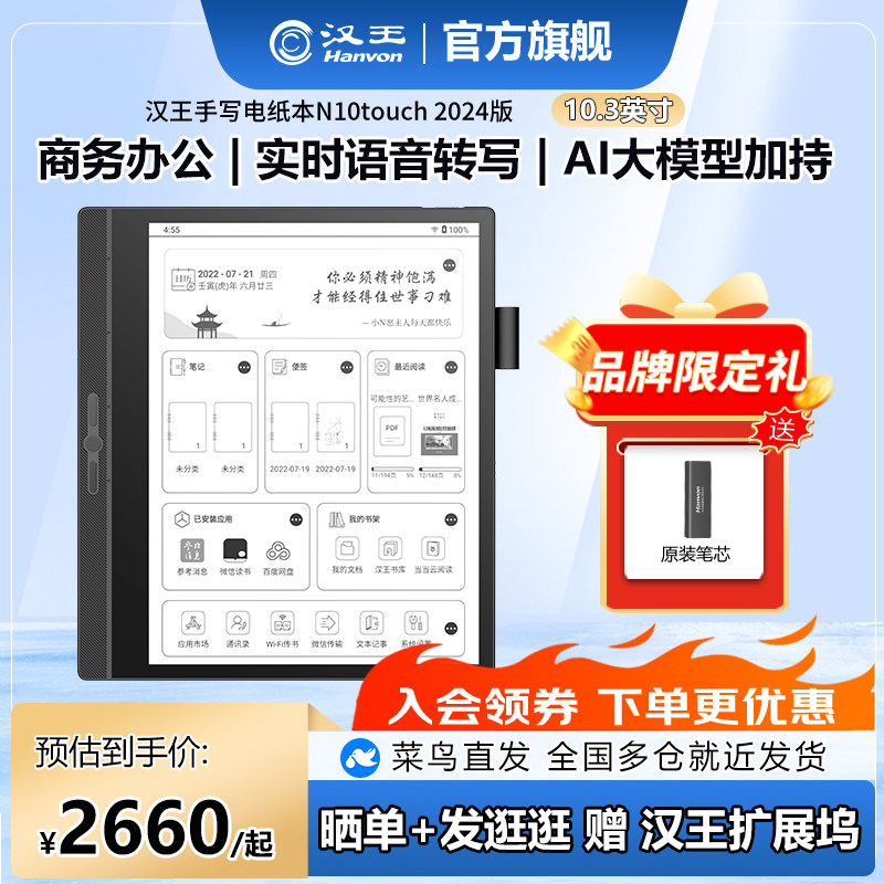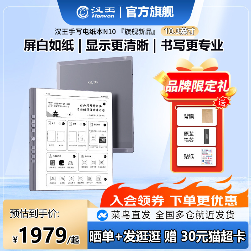 【带保护套】汉王n10手写电纸本10.3英寸墨水屏电纸书电子书阅读器电子笔记本水墨屏护眼小说阅览器pdf办公本