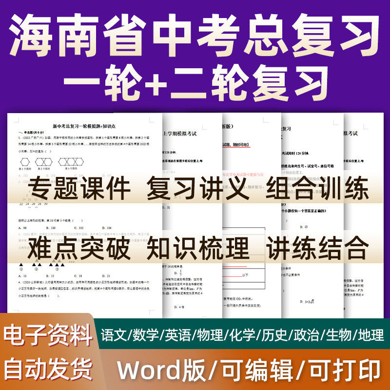 海南省2024中考总复习语文数学英语物理化学初三课件PPT知识点梳理专题训练经典模拟题历年真题试题电子版三亚海口三沙儋州