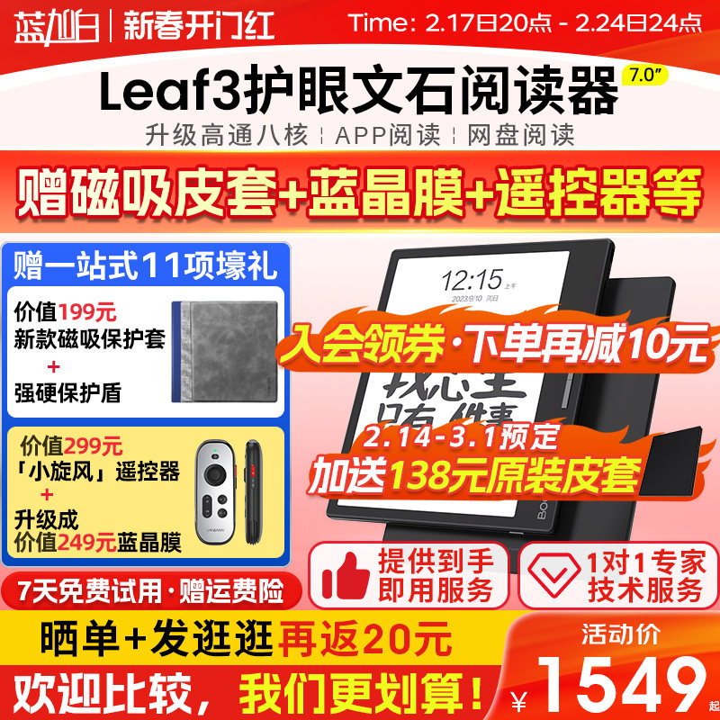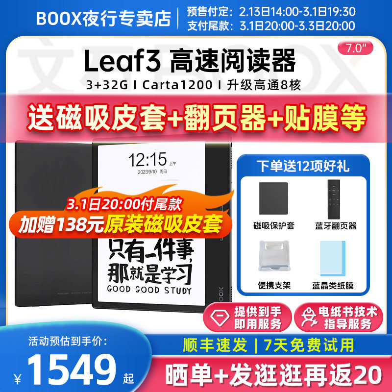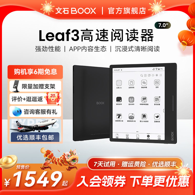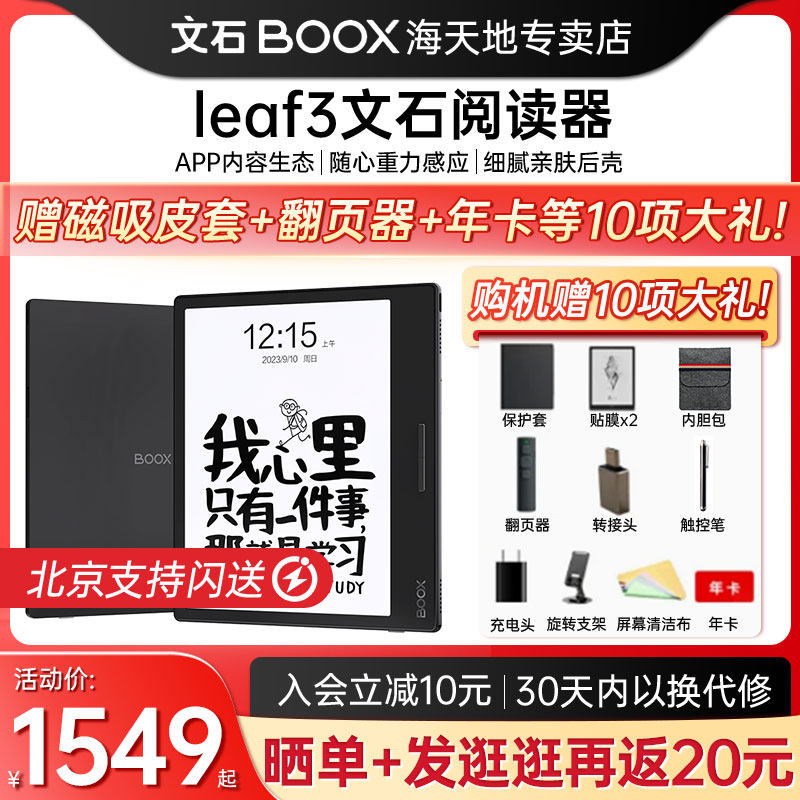 【预售赠保护套】文石BOOX Leaf3高速电子阅读器智能墨水屏电子书阅览器 类纸护眼屏看书听读书水墨屏电纸书