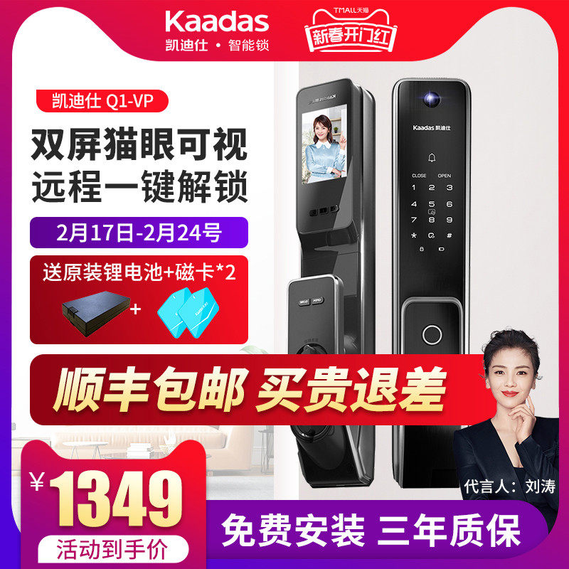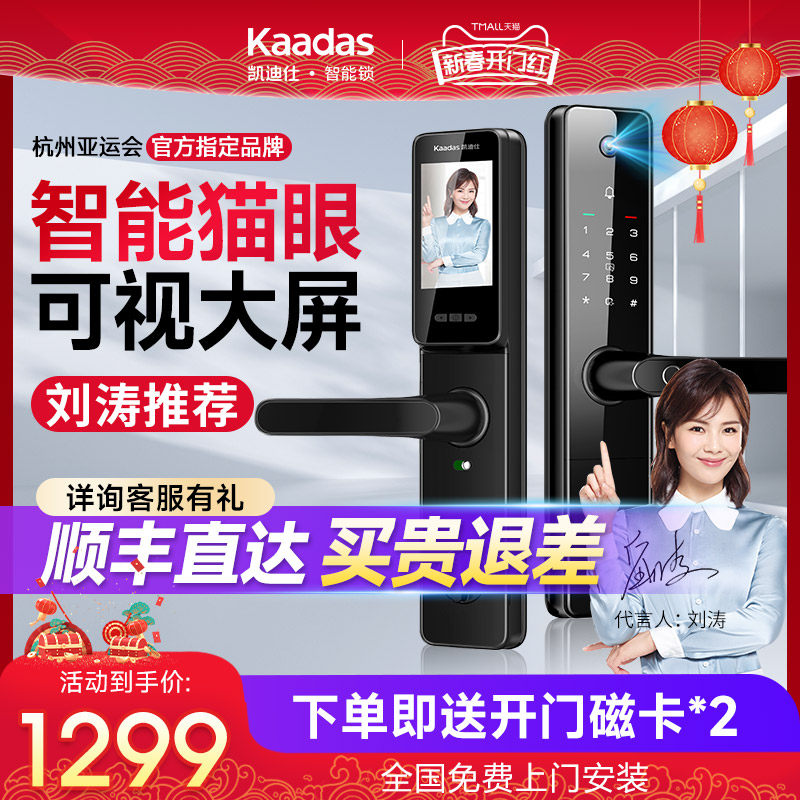 凯迪仕大屏可视猫眼智能锁指纹锁家用防盗门电子门锁磁卡锁密码锁