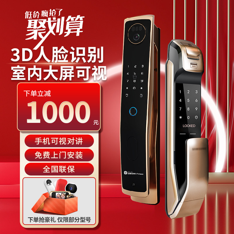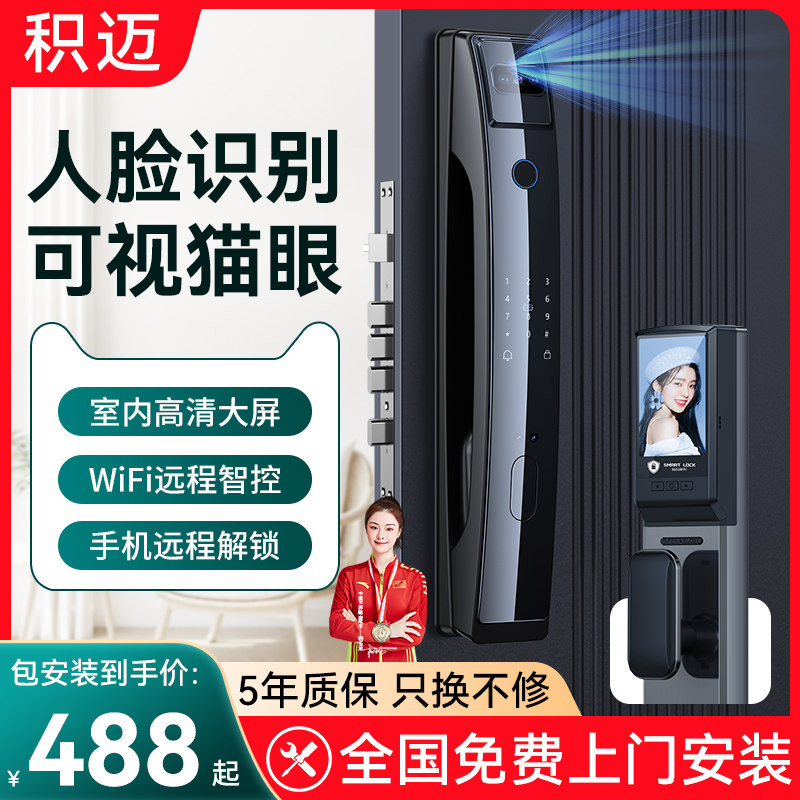 积迈指纹锁全自动智能门锁家用防盗门人脸识别可视猫眼电子密码锁