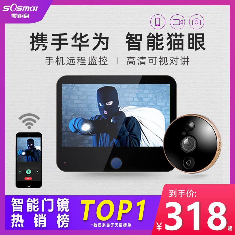 猫眼可视门铃家用监控智能电子无线远程连手机免打孔对讲抓拍变声