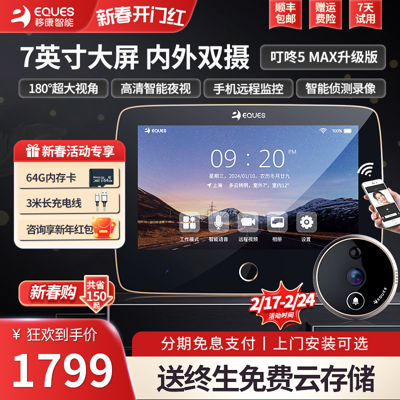 移康智能WIFI叮咚5代高清监控防盗门摄像头无线电子可视门铃猫眼