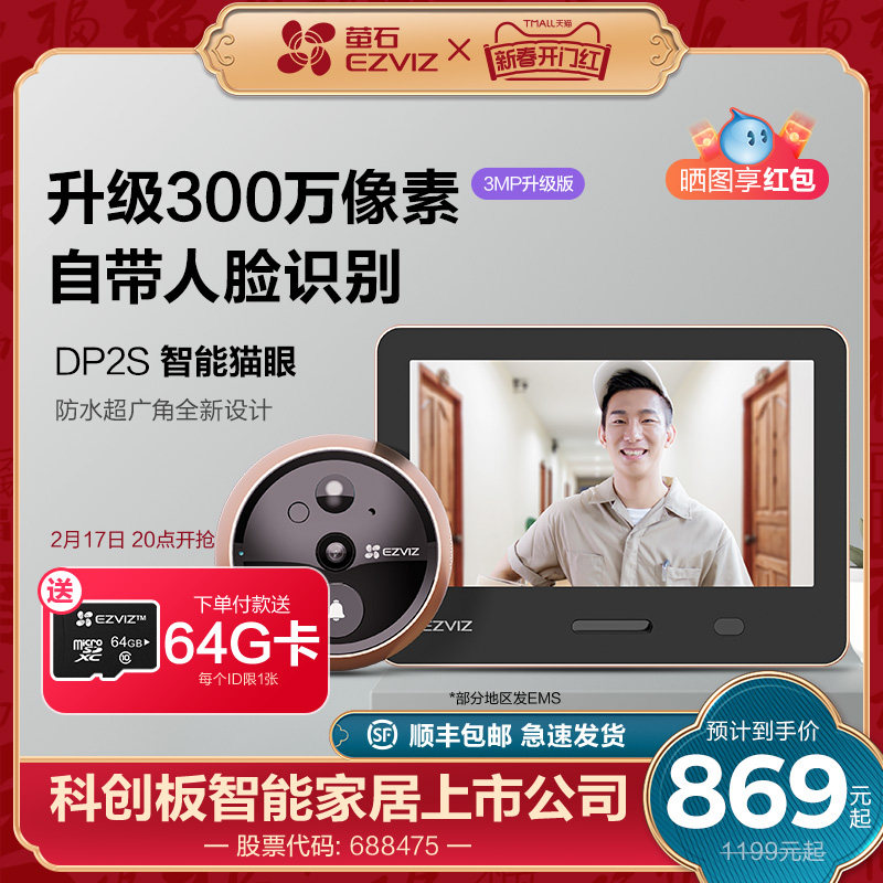 萤石云DP2C智能电子猫眼监控家用摄像头手机远程可视门铃门镜莹石