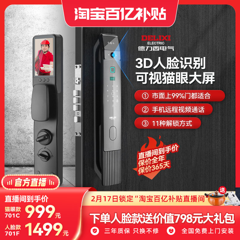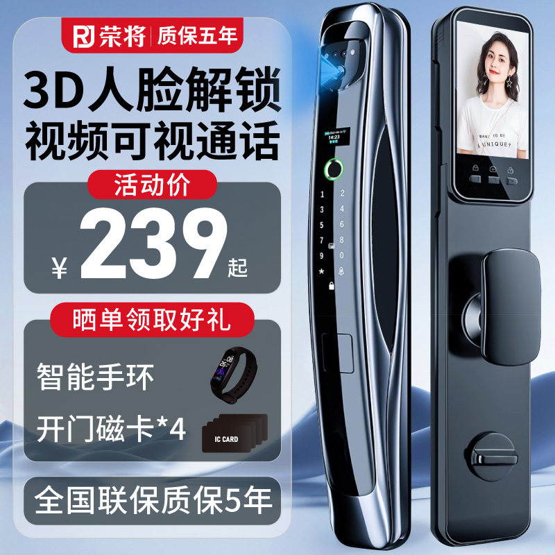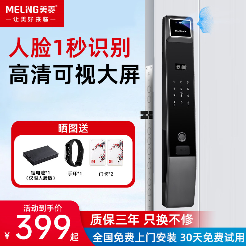 美菱3D人脸识别智能门锁全自动指纹锁电子门锁可视猫眼密码锁