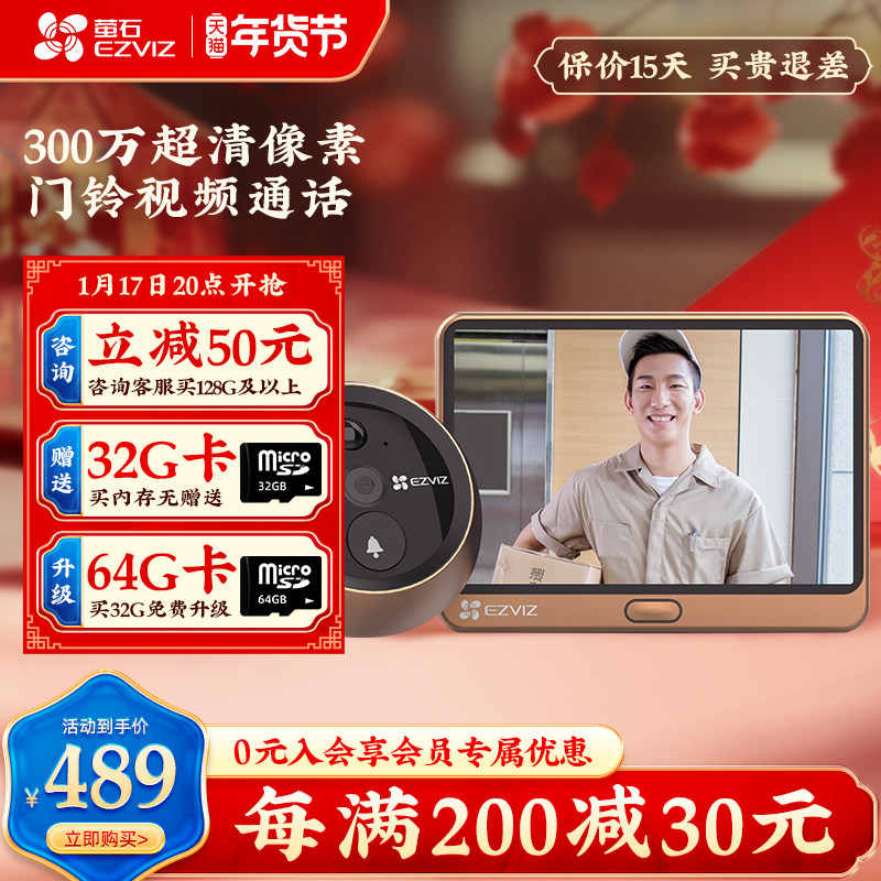 萤石云智能电子可视门铃猫眼家用高清摄像头远程语音对讲防撬门镜