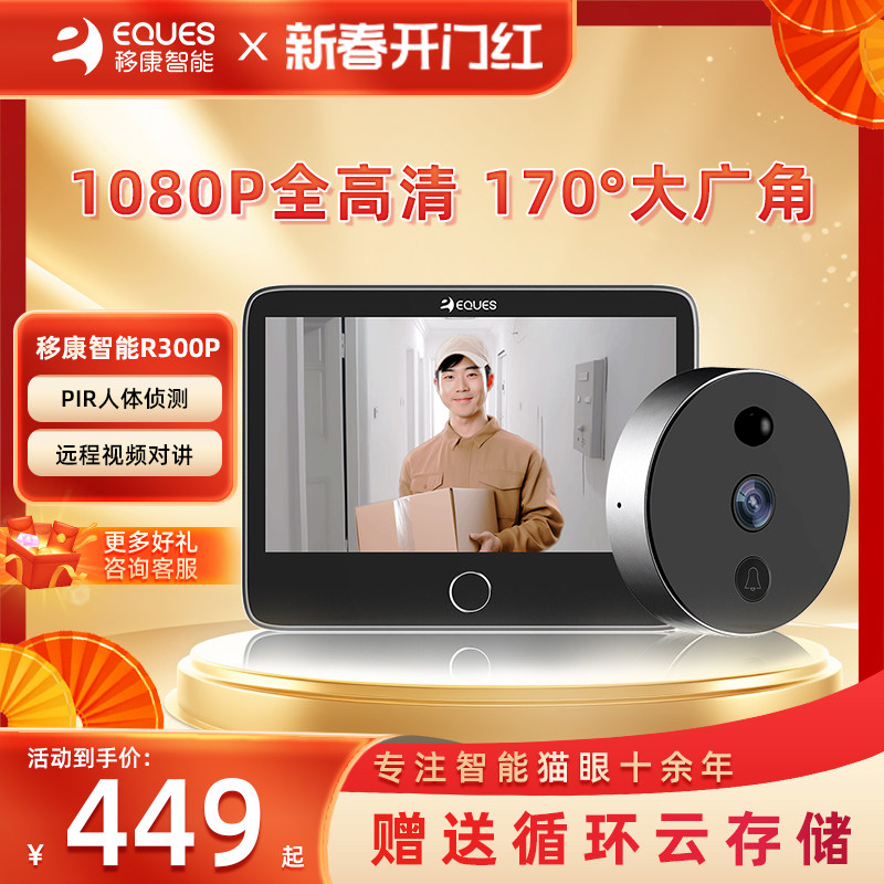 移康智能电子猫眼R300 防盗门猫眼门镜 家用可视猫眼带显示屏