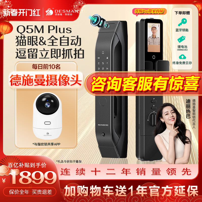 德施曼Q5MPlus智能门锁指纹锁家用电子门密码锁猫眼大屏3D人脸Pro