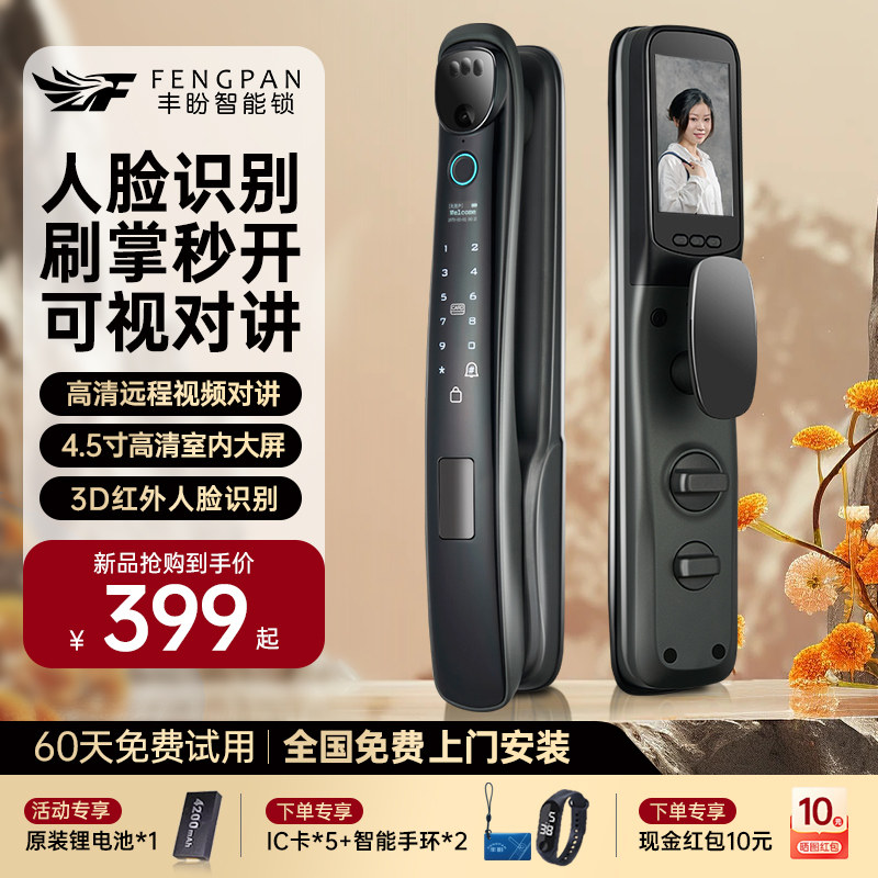 丰盼人脸识别全自动指纹锁可视猫眼电子密码锁家用防盗门智能门锁