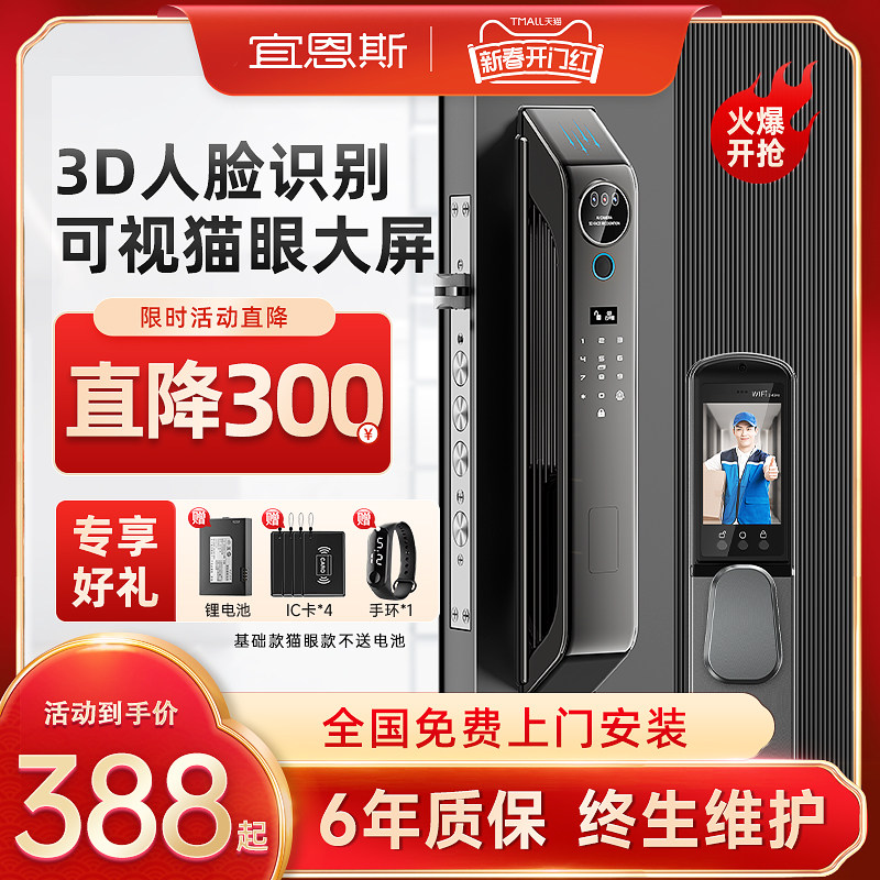 亚太天能视频猫眼人脸识别指纹锁家用防盗门密码锁智能锁电子门锁