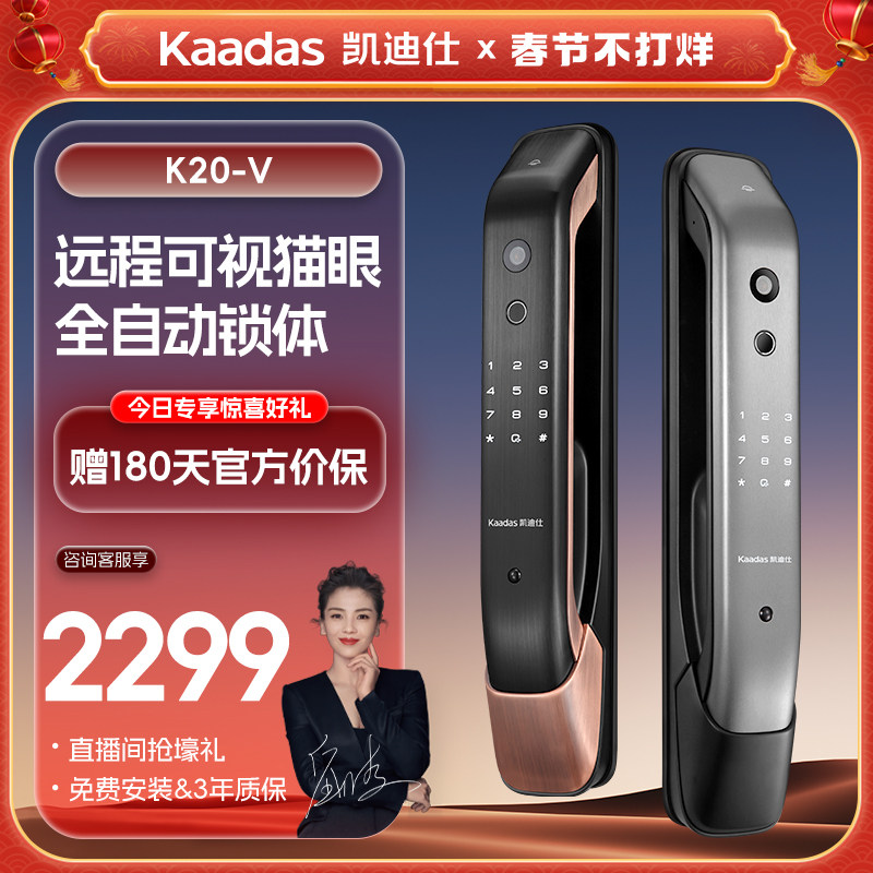 凯迪仕K20-V猫眼监控家用指纹电子密码智能防盗入户全自动门锁