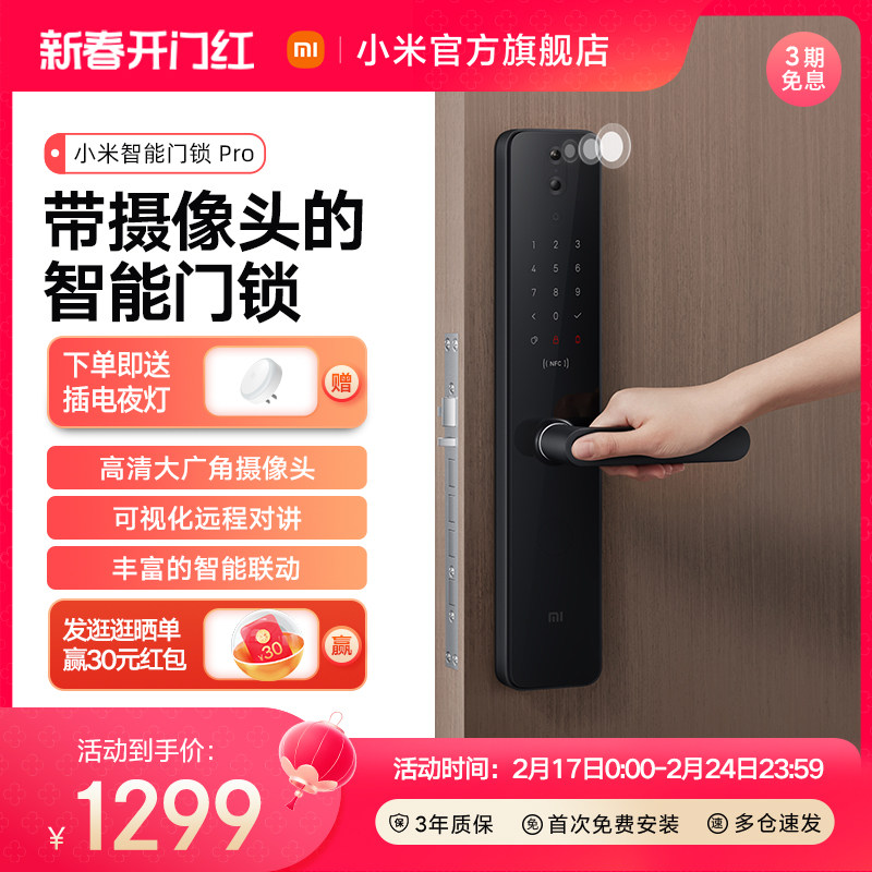 小米智能门锁Pro 电子猫眼监控摄像头指纹密码锁家用防盗门电子锁