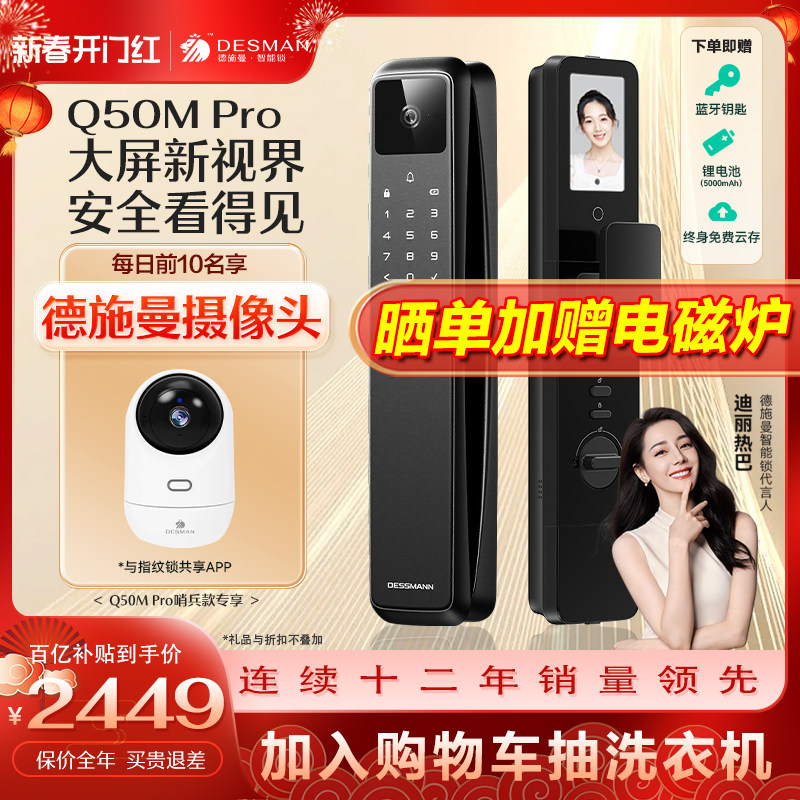 德施曼智能锁Q50Mpro指纹锁家用入户电子密码锁可视猫眼智能门锁