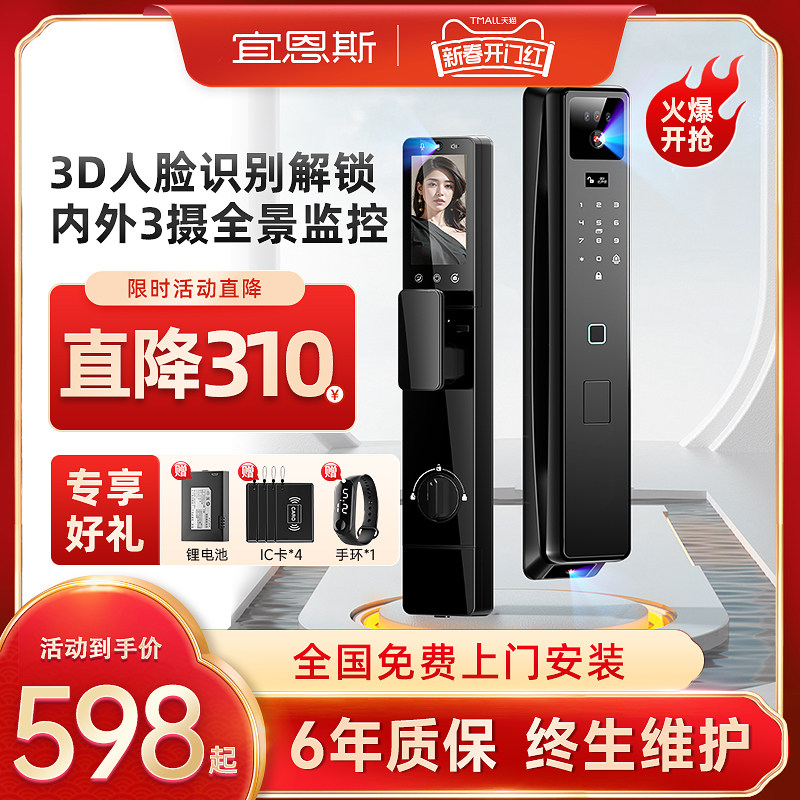 耶鲁3D人脸识别智能锁可视猫眼Yale全自动指纹锁家用防盗门电子锁
