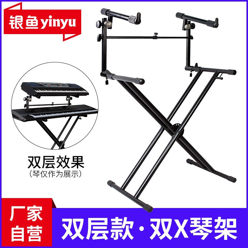银鱼通用电子琴架子双层折叠88键61电钢琴支架X型家用古筝键盘架