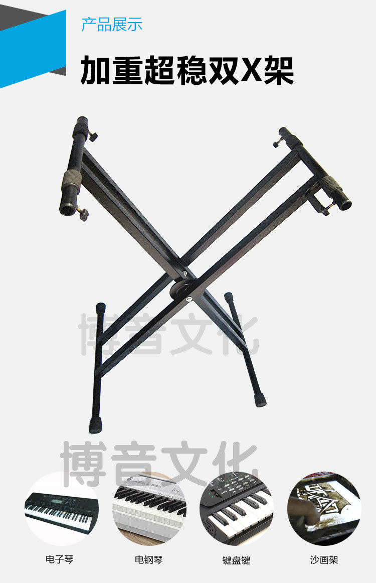 双管X型架子 电子琴架 电钢琴架 双层加粗61键88键加高琴架