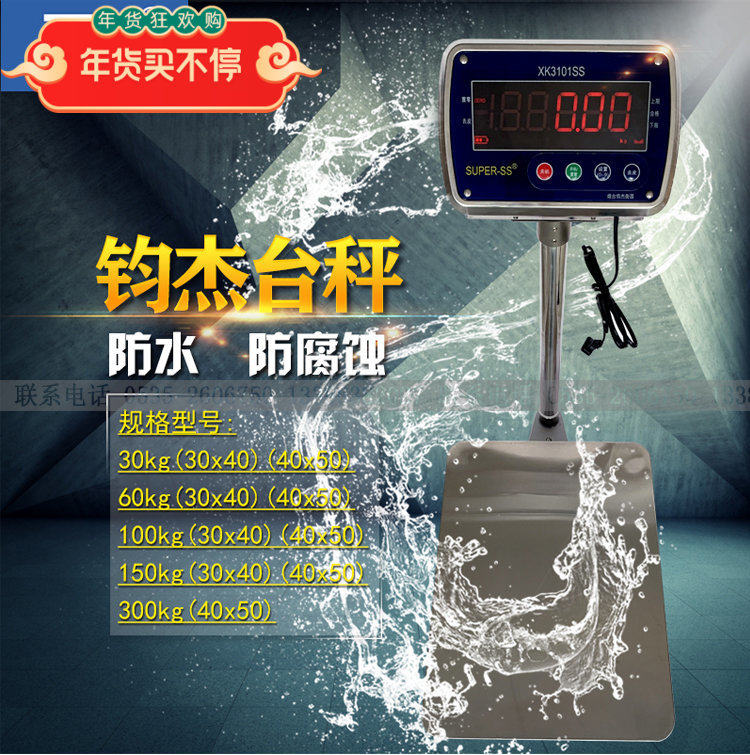英衡化工电子秤海鲜称食品工厂不锈钢电子称精准商用台秤电子磅称