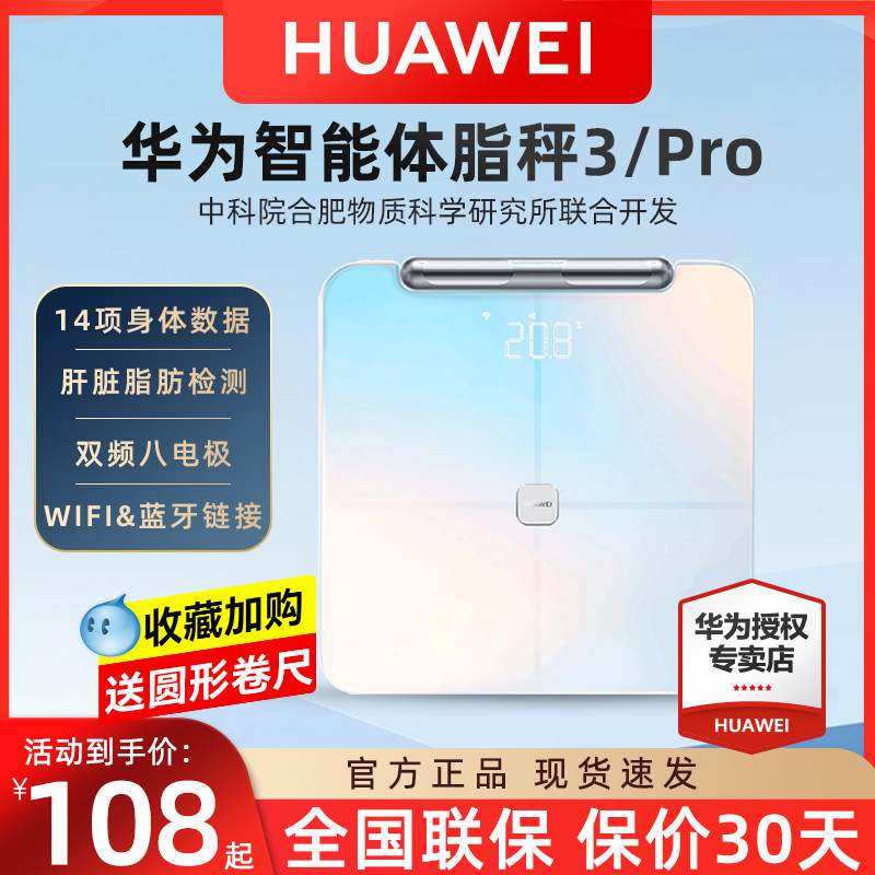 华为体脂秤3智能精准家用电子秤体重称计健康专业减肥专用测脂肪男女蓝牙wifi高精度人体体质秤pro官方旗舰店